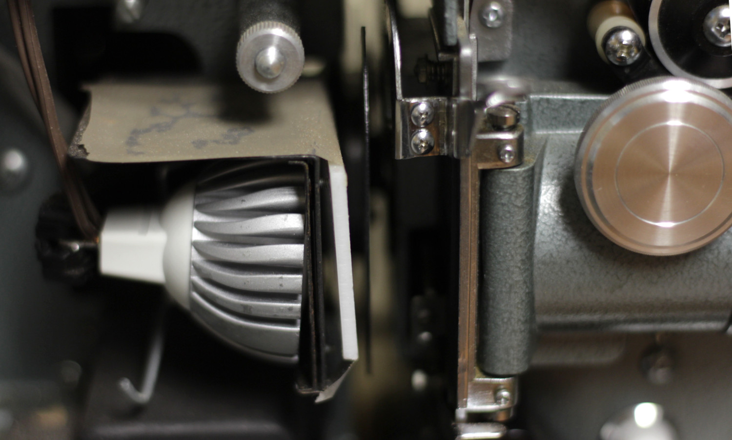 I have been asked to further expand on my telecine setup, but I have put it off until now because it’s a bit messy. Again I will confess, I am a cheapskate and I wanted to edit my 16mm in my computer without spending $.15 a foot or more. My little 3 minute Child’s Summer short used about 20 100′ rolls so just that project would total $300 for commercial telecine services. I toyed with the idea of creating my own rig to hold the film and move it one frames at a time, but after one test rig I gave up and decided to retrofit an existing projector. A friend had lent me an old Eiki ST/M and that seemed the best candidate.